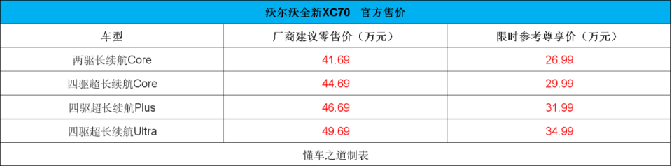 全新沃爾沃XC70近日正式登陸市場,推出四款不同配置車型,官方指導價區間為41.69萬元至49.69萬元,活動期間可享限時優惠價26.99萬元至34.99萬元。作為品牌首款基于SMA超級混動架構打造的車型,新車在動力系統與智能化配置方面實現突破性升級。