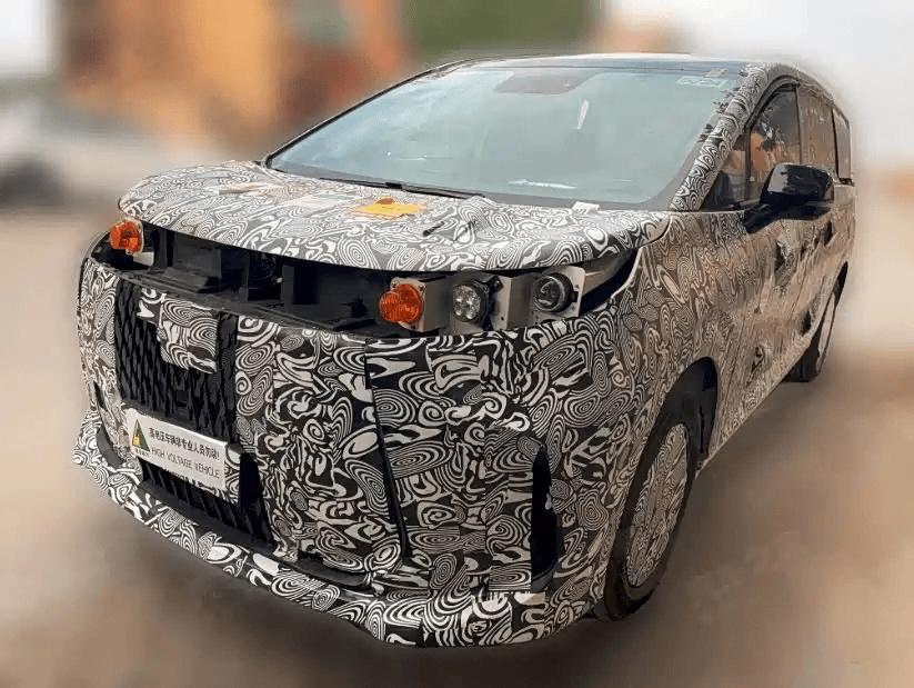 車身側面保持了傳統MPV車型的方正輪廓,隱藏式門把手設計符合當下新能源車型的審美趨勢。輪轂尺寸在測試階段顯得較為保守,但根據品牌慣例,量產版本或將根據配置差異提供多款輪轂造型可選。由于車身覆蓋著嚴密偽裝貼紙,具體車身尺寸參數尚未明確。