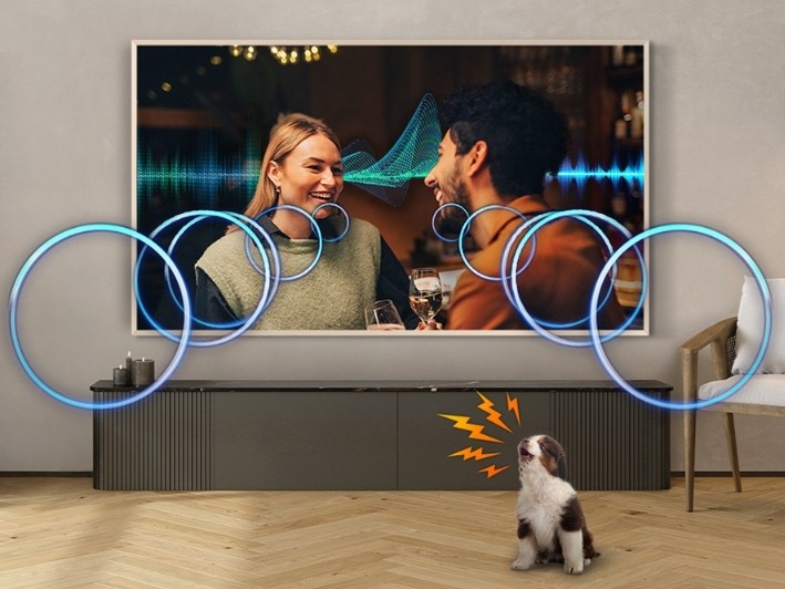 在音效維度,三星The frame畫壁藝術電視支持杜比全景聲技術,音畫追蹤OTS技術增強環繞聲的逼真感。自適應音效Pro與智能控聲Pro雙擎驅動,能夠智能分析音頻播放環境和內容特性,讓人物對話更清晰、聲音更生動均衡。Q交響樂技術使得電視與條形音響同步發聲,為用戶帶來堪比專業影院的聽覺享受。