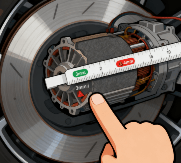 目前行業(yè)公認的硬性標(biāo)準(zhǔn)是剎車片厚度。新片厚度通常在10毫米左右,當(dāng)磨損至3毫米時必須立即更換。這個數(shù)值的確定基于安全考量——當(dāng)襯片厚度不足時,金屬基底會直接接觸剎車盤,不僅產(chǎn)生刺耳異響,更會導(dǎo)致制動距離顯著延長。有實驗數(shù)據(jù)顯示,磨損至極限的剎車片在緊急制動時,制動距離可能增加20%以上。