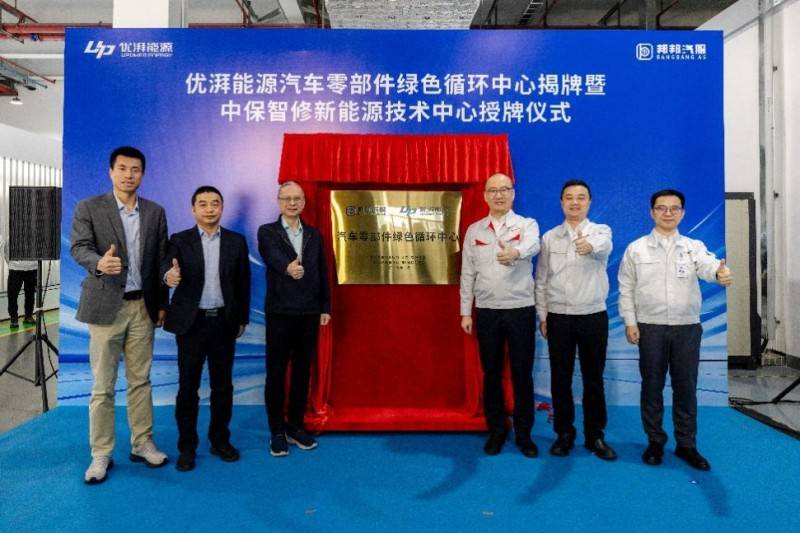 在優湃能源循環科技工廠內,邦邦汽服與優湃能源攜手打造的汽車零部件綠色循環中心正式揭牌,同期中保智修新能源技術中心也完成授牌。這一系列動作標志著兩家企業在汽車后市場綠色轉型領域邁出關鍵一步。活動現場,來自人保財險、廣汽集團等企業的數十位高管及業務骨干共同見證了這一重要時刻。
