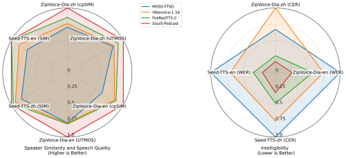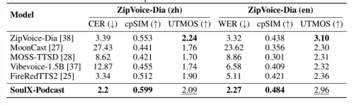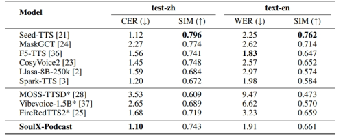 SoulX-Podcast在通用TTS上的表現,*官方模型的復現結果