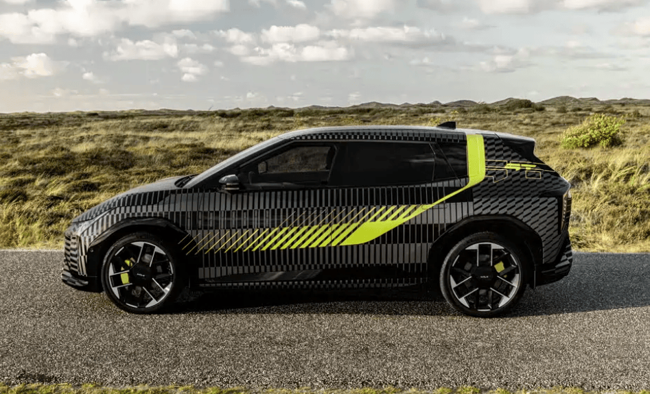 從設計層面看,EV4 GT延續了起亞電動家族的未來感語言,低矮的車身線條與寬體輪拱凸顯運動氣質,隱藏式門把手與封閉式前格柵則強化了其電動身份。盡管諜照中車輛覆蓋偽裝貼紙,但透過細節仍能感受到其蓄勢待發的姿態。