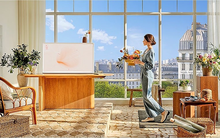 與之相映成趣的是三星The Serif畫境藝術電視,其以標志性“I”型框架和柔和典雅的云白色調成為空間中的雕塑性存在。畫質上,4K AI影像增強技術智能提升分辨率,輔以QLED屏幕顯示技術確保了影像暗部細節不失真,亮部過渡不刺眼。啞光屏顯技術能有效減少環境光干擾,讓觀眾在靜謐中欣賞藝術真諦。無論是擺在桌面上點綴家居空間,還是安裝支架后在不同空間里任意穿梭,其全方位的時尚設計確保了從任何角度觀看皆成風景。息屏時的環境屏模式+可顯示實時天氣或用戶自行上傳的圖片,設計師從自然世界中獲取靈感所設計的葉子圖案和紋理織物圖案,更為此模式增添了獨特的藝術氣息與生命溫度。