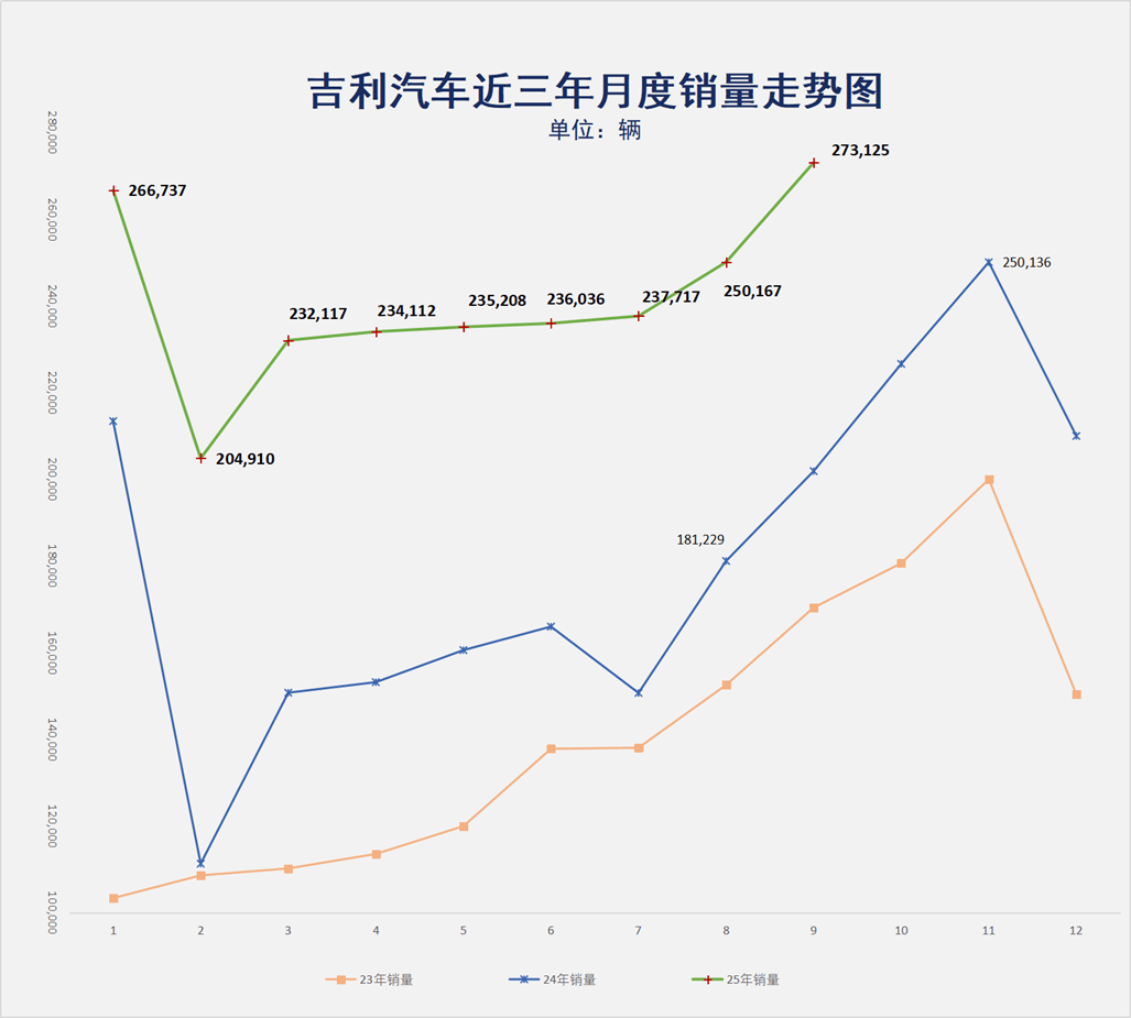 國(guó)慶首日,各大車(chē)企紛紛曬出9月成績(jī)單,以亮眼業(yè)績(jī)向祖國(guó)獻(xiàn)禮。其中,吉利汽車(chē)憑借強(qiáng)勁的市場(chǎng)表現(xiàn)成為焦點(diǎn),單月銷(xiāo)量突破27.31萬(wàn)輛,同比增長(zhǎng)35%,創(chuàng)下歷史新高。這一成績(jī)?cè)诔寺?lián)會(huì)數(shù)據(jù)顯示的車(chē)市個(gè)位數(shù)整體漲幅背景下,更顯含金量十足。