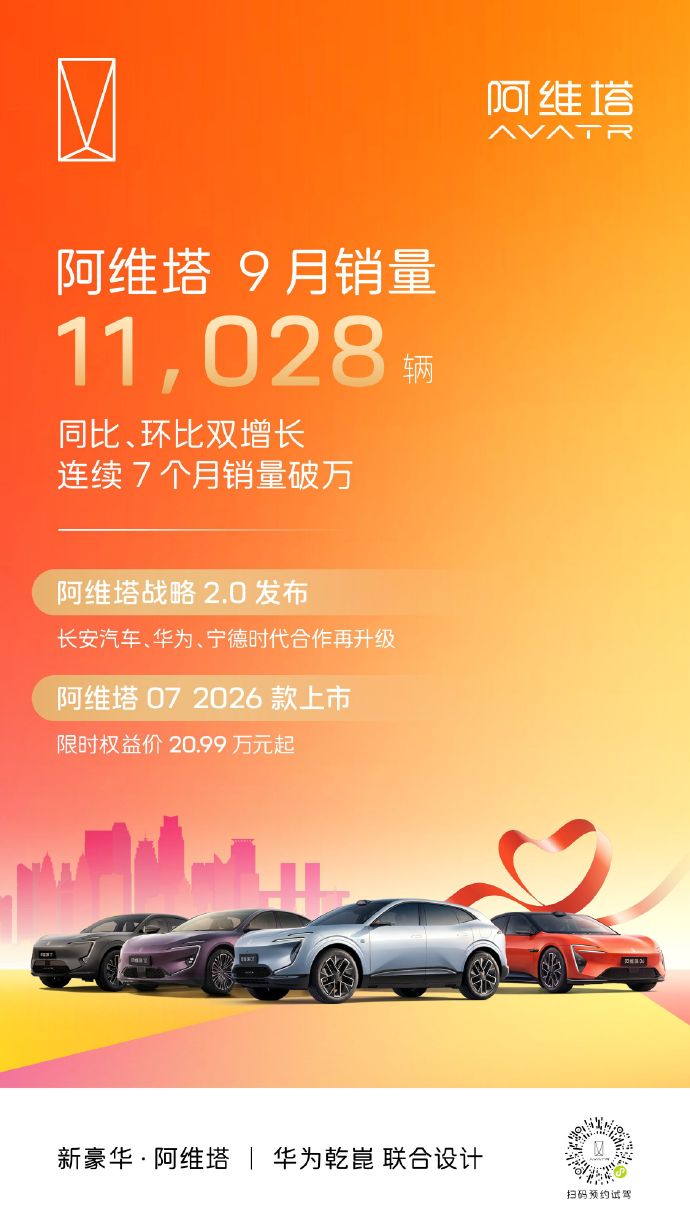 國內新能源汽車市場再傳捷報,阿維塔品牌近日公布最新銷售數據,9月單月交付量達到11028輛,實現同比與環比雙維度增長。這一成績標志著該品牌已連續七個月保持月銷破萬的穩定表現,在競爭激烈的高端新能源賽道持續鞏固市場地位。