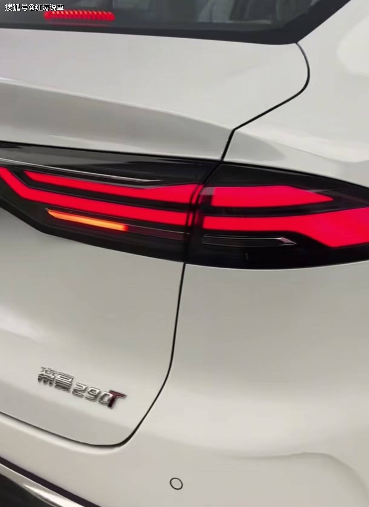 設計語言全面向高端化靠攏。前臉采用六邊形直瀑式格柵,搭配銀色品牌標識與前置攝像頭,兩側導流槽嵌入雙L型鍍鉻裝飾,LED大燈組采用上下分層設計,點亮后辨識度極高。車身側面通過硬朗腰線與溜背車頂營造動感姿態,18英寸雙色輪轂與鍍鉻窗線提升精致感。尾部設計摒棄貫穿式燈組,改用黑色飾板連接兩側燈組,1.5T車型專屬的"290T"標識與雙邊共兩出鍍鉻排氣裝飾,進一步強化運動屬性。
