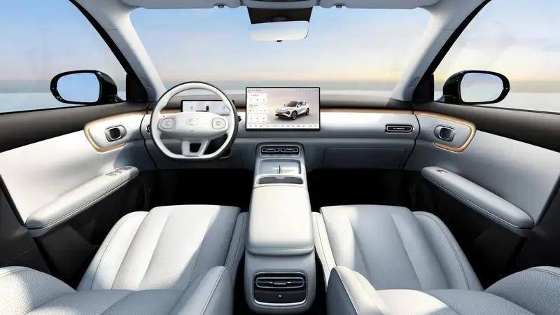 內(nèi)飾設(shè)計方面,Q05采用“舒適環(huán)抱+清爽治愈”理念,以環(huán)繞式地平線布局營造自然包裹感。儀表臺、門板及副儀表區(qū)域大面積覆蓋軟包材質(zhì),通過不同材質(zhì)與色彩的碰撞,形成山水層疊IP嵌飾板的懸浮視覺效果??萍寂渲蒙?,車輛配備10.17英寸全液晶儀表與15.6英寸2.5K高清懸浮中控屏,為駕駛者提供清晰直觀的信息交互體驗。