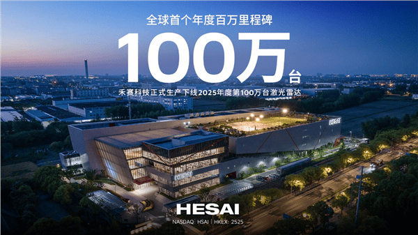 全球激光雷達行業迎來歷史性時刻——禾賽科技(NASDAQ: HSAI;HKEX: 2525)宣布,2025年第100萬臺激光雷達已于9月底完成生產下線。這一突破使禾賽成為全球首家年產量突破百萬臺的激光雷達企業,標志著其"年百萬級"超大規模量產能力正式確立行業標桿地位。該里程碑的達成,也意味著禾賽科技創業初期設定的"2025年讓全球1%車輛具備三維感知能力"愿景即將成為現實。
