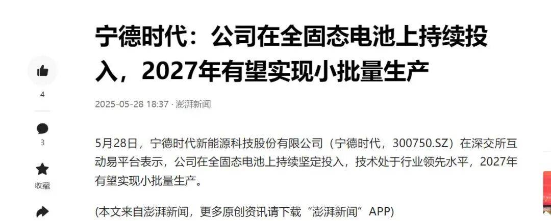 盡管技術前景誘人,但量產進程卻面臨多重挑戰。寧德時代與比亞迪作為行業龍頭,均對固態電池的商業化節奏持謹慎態度。比亞迪高管曾公開批評半固態電池為“文字游戲”,寧德時代則在2025年半年報中直言,當前資本熱度遠超產業實際進度,樣品展示與規?;a存在巨大鴻溝。這種謹慎源于技術、成本與市場的三重壓力。