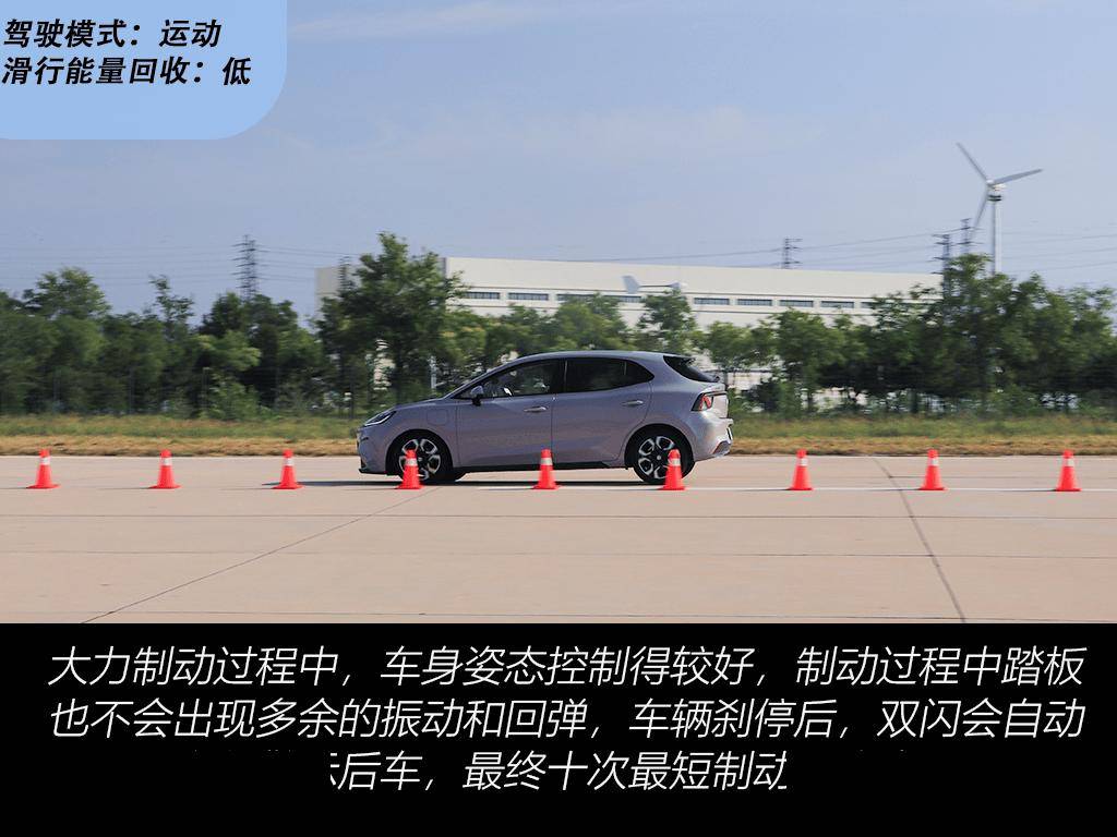 動力系統(tǒng)方面,MG4采用前置單電機布局,最大功率120千瓦,峰值扭矩250牛·米,匹配朝陽RADIAL RP76低滾阻輪胎。實測數(shù)據(jù)顯示,其0-100km/h加速時間為8.02秒,0-400米加速用時16.07秒,尾速達138.17km/h。在連續(xù)多次加速測試中,動力輸出穩(wěn)定性表現(xiàn)突出,未出現(xiàn)明顯衰減。制動系統(tǒng)采用前通風盤式+后盤式組合,100-0km/h最短制動距離僅36.77米,連續(xù)10次測試后最長制動距離為38.78米,熱衰減控制優(yōu)于同級車型。不過,朝陽輪胎在極限工況下易出現(xiàn)打滑現(xiàn)象,成為性能短板。