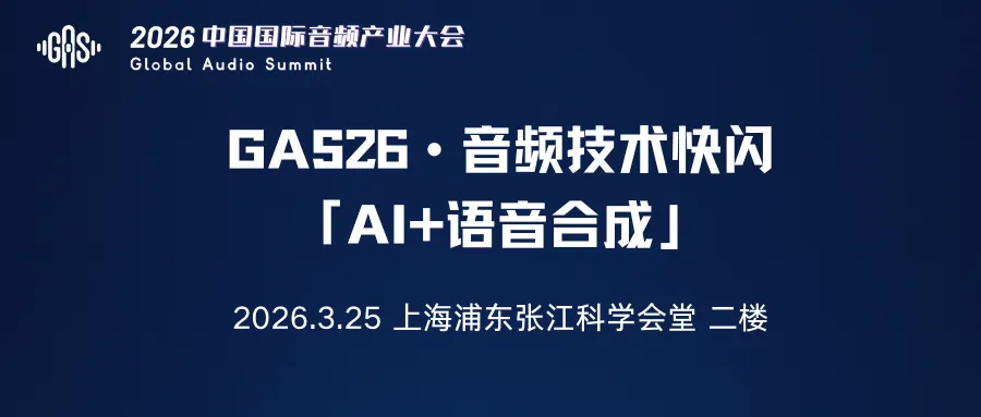2026中國國際音頻產(chǎn)業(yè)大會(huì)(GAS)同期將舉辦“GAS26 · 音頻技術(shù)快閃「AI+語音合成」” !