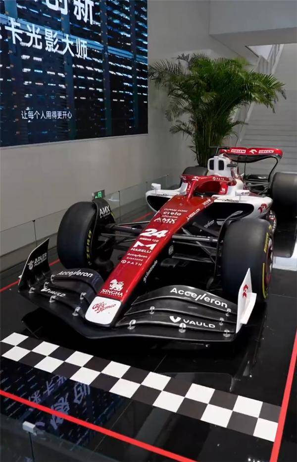 車展上最引人注目的當屬一臺來自F1賽場的頂級賽車——中國首位F1正式車手周冠宇2022賽季的戰車。這臺賽車采用全碳纖維材質打造,車身線條流暢且充滿競技感,專為極致過彎設計,最高時速可達350公里以上。它的亮相讓現場員工近距離感受到了職業賽車的速度與激情。