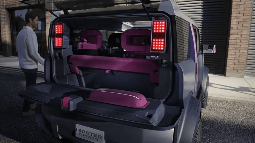 作為一款專為日常生活打造的電動汽車,Hipster的續航表現足以應對日常通勤。用戶每周僅需充電兩次,即可滿足常規行程的用電需求。在儲物空間方面,后備箱標準容積為70L,若將后排座椅放倒,容積可擴展至500L,輕松容納大件物品或購物戰利品。