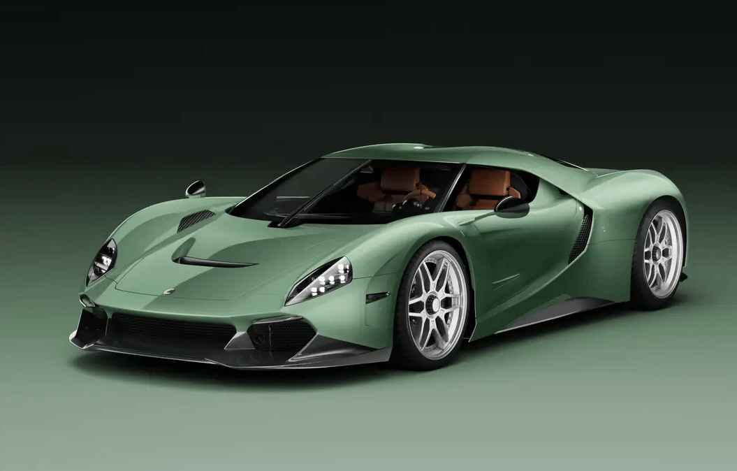 車身設計融合了復古美學與現代科技。經典的楔形輪廓搭配寬大的前后翼子板,雙六輻式輪圈與碳陶制動系統強化了運動氣質。全車框架及前后副車架均采用碳纖維材質,重量控制在2645磅以內,設計靈感源自LMP1原型耐力賽車。底盤配備推桿懸架系統,搭配不等長控制臂、防傾桿及Bilstein提供的彈簧與阻尼器,兼顧操控與舒適性。