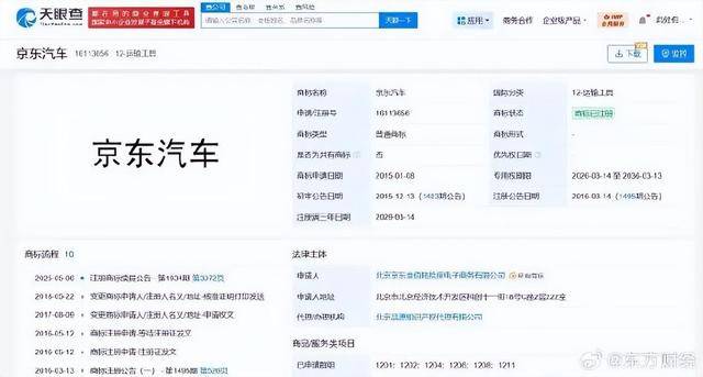 北京京東叁佰陸拾度電子商務(wù)有限公司在商標(biāo)布局方面也下足了功夫。天眼查App顯示,該公司已申請(qǐng)注冊(cè)多枚與“京東汽車”相關(guān)的商標(biāo),涵蓋運(yùn)輸工具、科學(xué)儀器、廣告銷售等多個(gè)國(guó)際分類。目前,部分商標(biāo)已成功注冊(cè),為京東汽車的品牌建設(shè)提供了有力保障。
