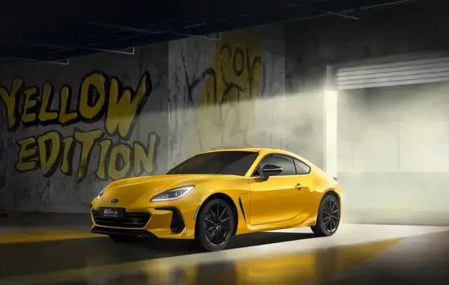 外觀方面,新車延續了BRZ經典的2門4座硬頂跑車造型,并新增專屬競速黃車漆,前包圍通風口及外后視鏡罩均采用黑化處理,車尾則配有黑色BRZ徽章與紅色STI標識,搭配鴨尾式擾流板,運動氣息十足。全系標配18英寸亮黑色10輻輪圈,搭配米其林PS4系列215/40 R18輪胎,進一步提升了整車的視覺沖擊力。