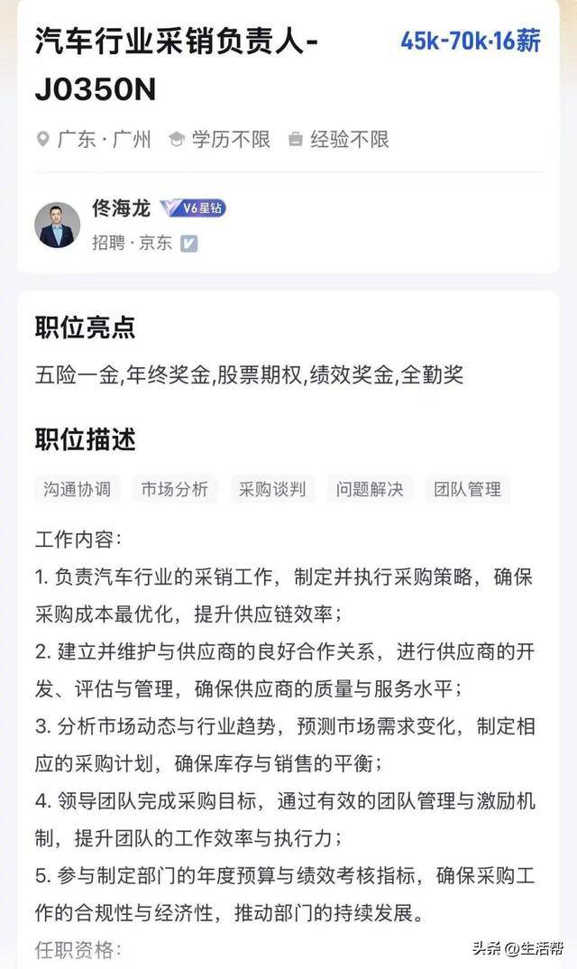 其中,零售事業部的算法崗位薪酬頗具吸引力,最高年薪可達123萬元(35k—65k*19薪),但對應聘者的技術能力要求較高,需具備算法、深度學習及大模型等領域的成熟經驗。而汽車行業采銷負責人的年薪也超過110萬元(45k—70k*16薪),該崗位需要應聘者擁有5—10年的相關經驗,并熟悉汽車零部件采購流程及供應鏈管理。