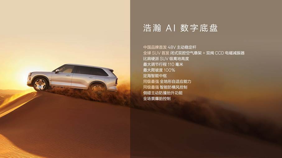 底盤(pán)技術(shù)方面,極氪9X首發(fā)搭載浩瀚AI數(shù)字底盤(pán),集成閉式雙腔空氣懸架、雙閥CCD電磁減振器及48伏主動(dòng)穩(wěn)定桿技術(shù),實(shí)現(xiàn)0.2秒內(nèi)80毫米舉升,動(dòng)態(tài)側(cè)傾接近“零側(cè)傾”。該系統(tǒng)首次將AI算力引入底盤(pán)域,通過(guò)定海智能中樞實(shí)現(xiàn)姿態(tài)控制從“事后跟隨”到“提前預(yù)判”的進(jìn)化,即使在120公里/小時(shí)高速濕滑路面雙輪爆胎,仍能穩(wěn)穩(wěn)剎停。越野場(chǎng)景下,系統(tǒng)可自動(dòng)識(shí)別深雪、泥地等7種地形并匹配專屬駕駛模式。