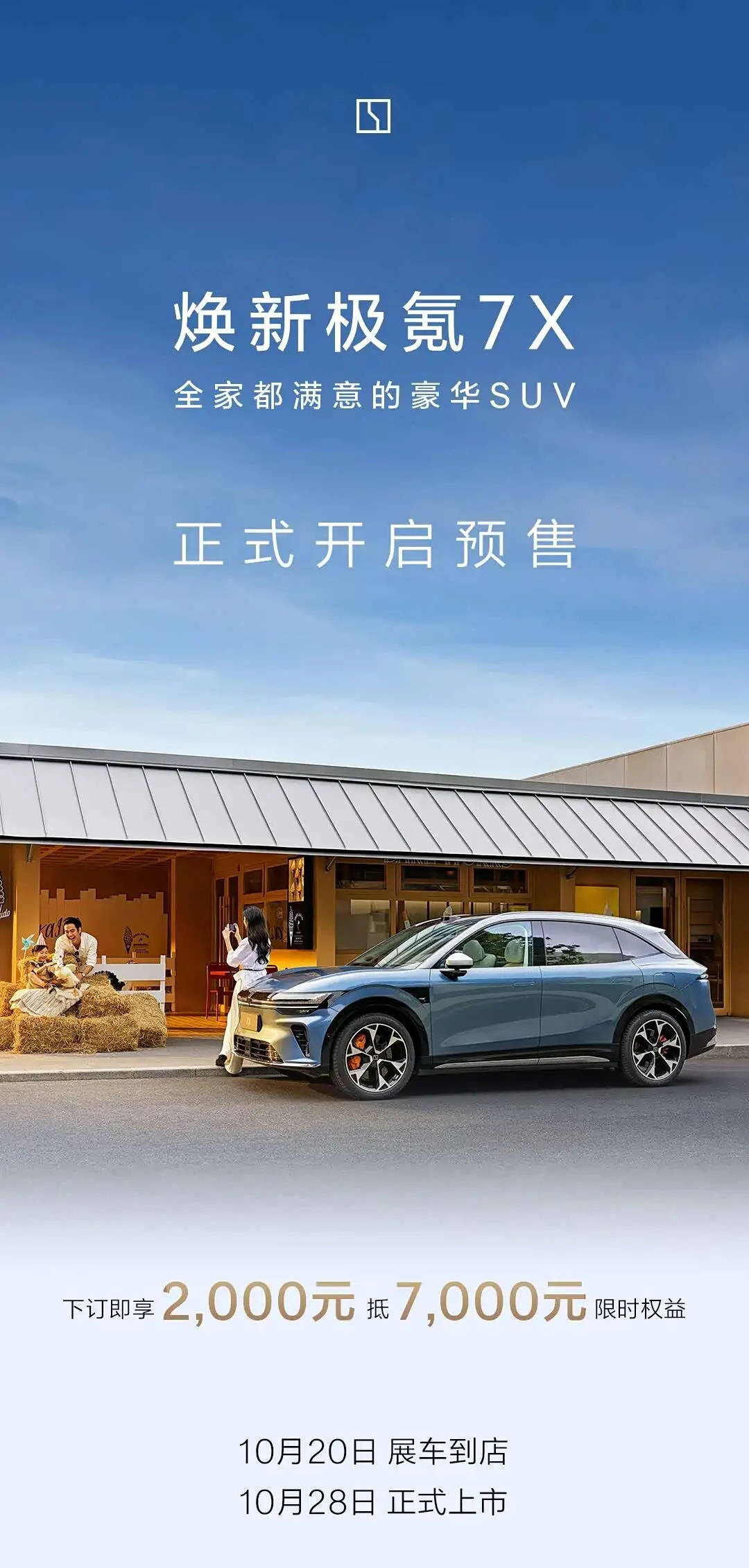 近日,汽車市場迎來一則重磅消息——新款極氪7X正式開啟預售。此次預售共推出三款不同版型,分別為75度后驅Max版、103度后驅Max版以及103度四驅Ultra版。為了讓消費者在預售階段就能享受到實惠,官方特別推出下訂即享2000元抵7000元的限時權益。目前,展車已陸續抵達各門店,新車將于10月28日正式上市,并在上市當日同步開啟交付。
