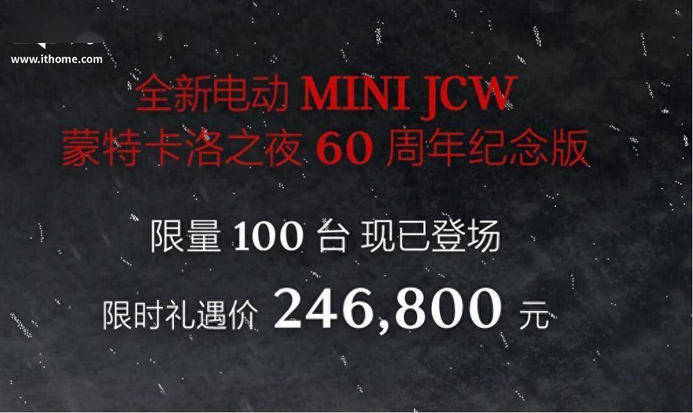 為致敬上世紀60年代經典Mini在蒙特卡洛拉力賽的奪冠傳奇,MINI品牌近日推出全新電動MINI JCW蒙特卡洛之夜60周年紀念版車型。這款限量100臺的特別版車型以24.68萬元的限時禮遇價開啟銷售,通過一系列專屬設計元素重現歷史榮光。