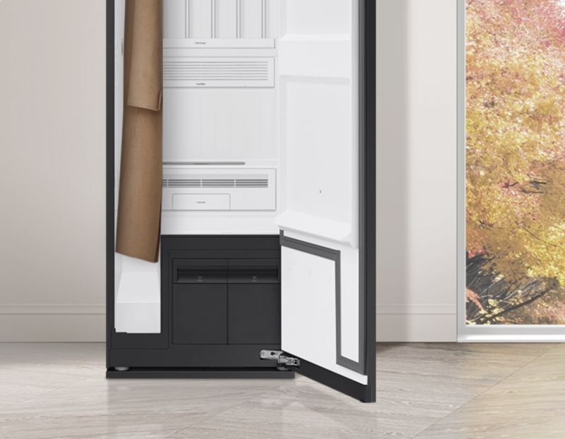 打開三星AI神 黑鉆衣物護理機的柜門,還會發現這臺機器內藏了諸多貼心的設計細節。內部劃分的長衣懸掛區,專為大件、長款衣物護理而設計,讓女士長裙、緞面風衣與羊毛大衣得到更加精細化護理,避免底部堆疊的尷尬。多功能置物架則能輕松容納冬季帽子、配飾與孩子玩偶等物品,全面守護精致穿搭與家人健康,通過簡單的下拉和折疊,即可讓機身內部空間井然有序,以看得見的細節彰顯品質生活態度。