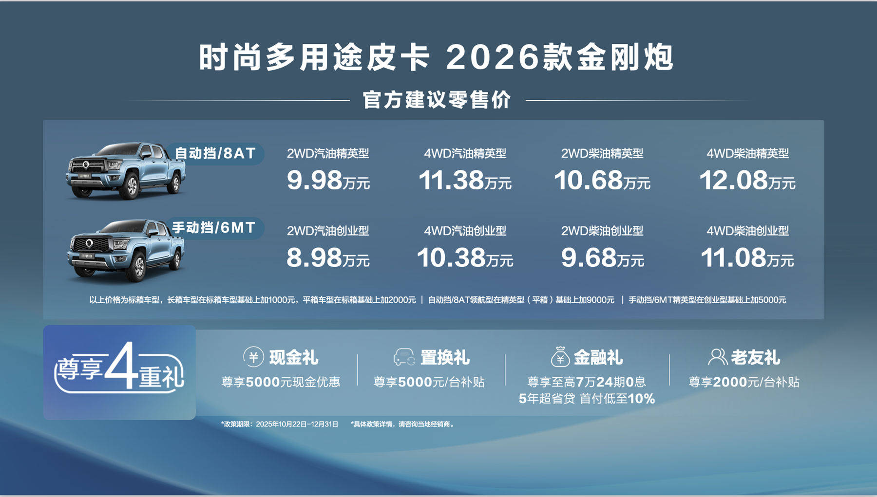 在當(dāng)前皮卡市場(chǎng)“內(nèi)卷”加劇的環(huán)境下,2026款金剛炮通過價(jià)格調(diào)整與配置升級(jí),強(qiáng)化了性價(jià)比優(yōu)勢(shì)。盡管動(dòng)力系統(tǒng)未作改動(dòng),但部分車型售價(jià)下調(diào),乘用化配置下放,貨箱功能增強(qiáng),使其在商用皮卡領(lǐng)域保持競(jìng)爭(zhēng)力。