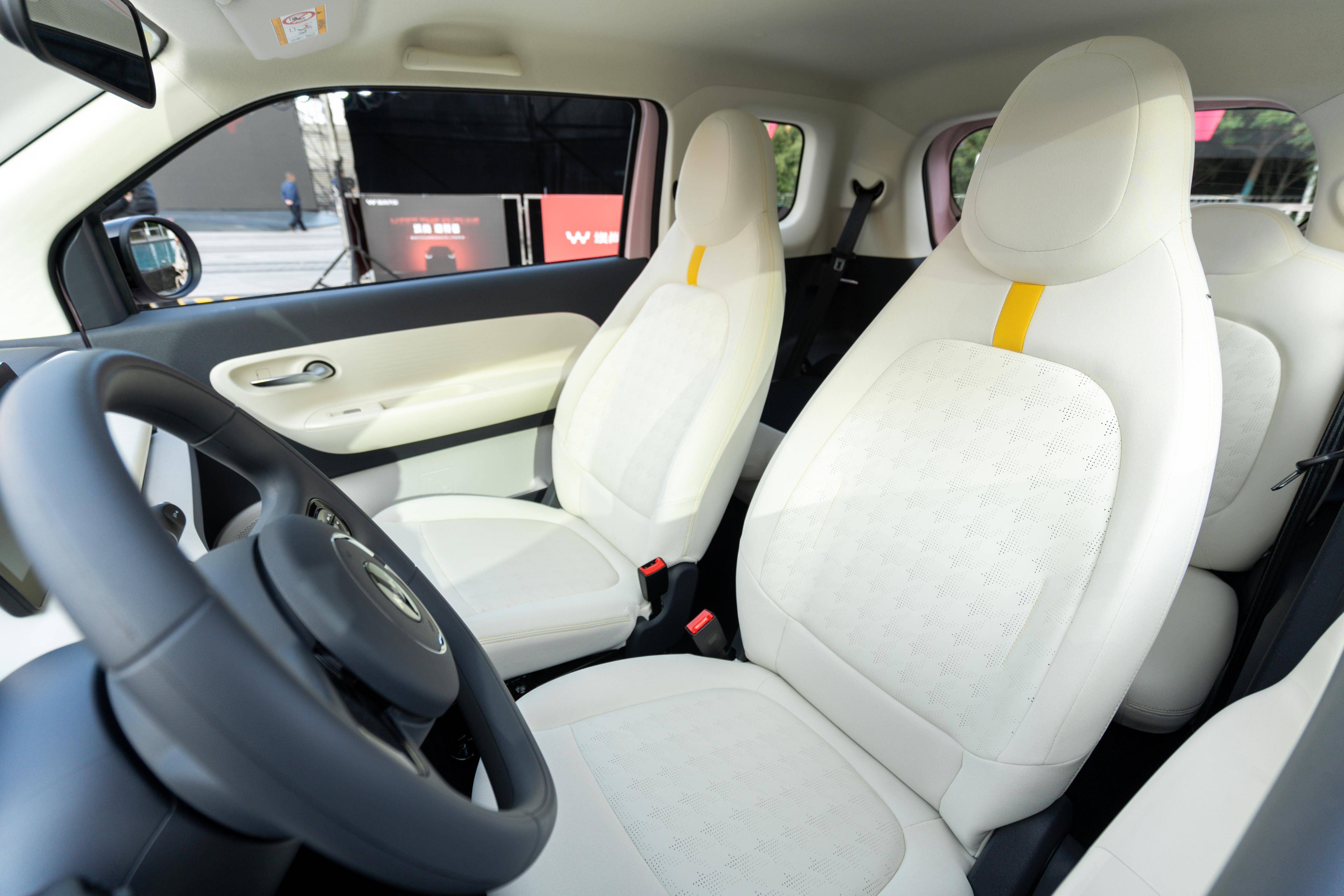 A100C的外觀設計突破傳統代步車框架,采用微笑式前臉與靈眸閃耀大燈組合,配合雙色懸浮車頂和四葉草輪轂設計,提供7種幻彩車色選擇。超60%軸長比打造的黃金比例車身,既保留萌趣氣質又融入力量感元素,精準捕捉年輕群體對個性化審美的追求。車內空間通過分層懸浮儀表臺和豪車同款懷擋設計,營造出簡奢與實用并存的座艙環境。