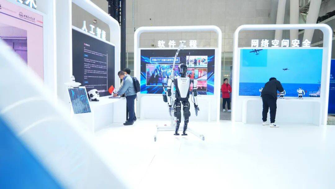 互動體驗區(qū)成為本次展覽的亮點之一。MR理化生數(shù)智實驗空間通過空間深度算法,將虛擬實驗器材融入現(xiàn)實環(huán)境,學(xué)生可親手操作虛擬實驗設(shè)備,沉浸式體驗科技魅力;機(jī)器人活動區(qū)則展示了雙足機(jī)器人的實體化應(yīng)用,觀眾可通過對話、指令與機(jī)器人互動,感受其日益逼近人類的智能水平;AI棋藝競技場內(nèi),“下棋機(jī)器人”融合傳統(tǒng)棋類與智能算法,觀眾可與自適應(yīng)難度的AI對弈,體驗人機(jī)博弈的樂趣;AI音樂互動區(qū)則提供歌曲創(chuàng)作、音樂MV制作、歌曲改編等服務(wù),觀眾只需與AI Agent對話即可完成個性化創(chuàng)作。