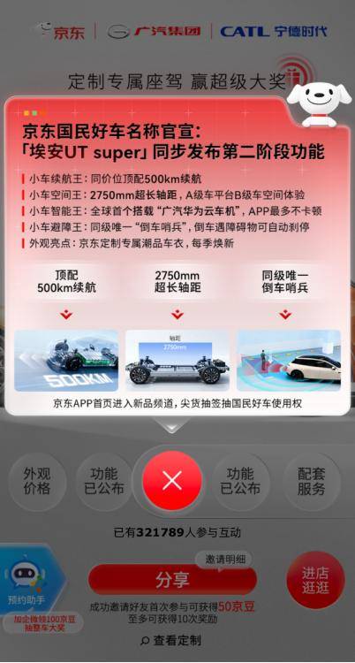 京東與廣汽集團、寧德時代聯手打造的“國民好車”項目迎來新進展。近日,京東APP商品詳情頁更新顯示,該項目首款車型正式命名為“埃安UT super”,并詳細公布了續航、空間、智能配置及安全性能四大核心亮點。