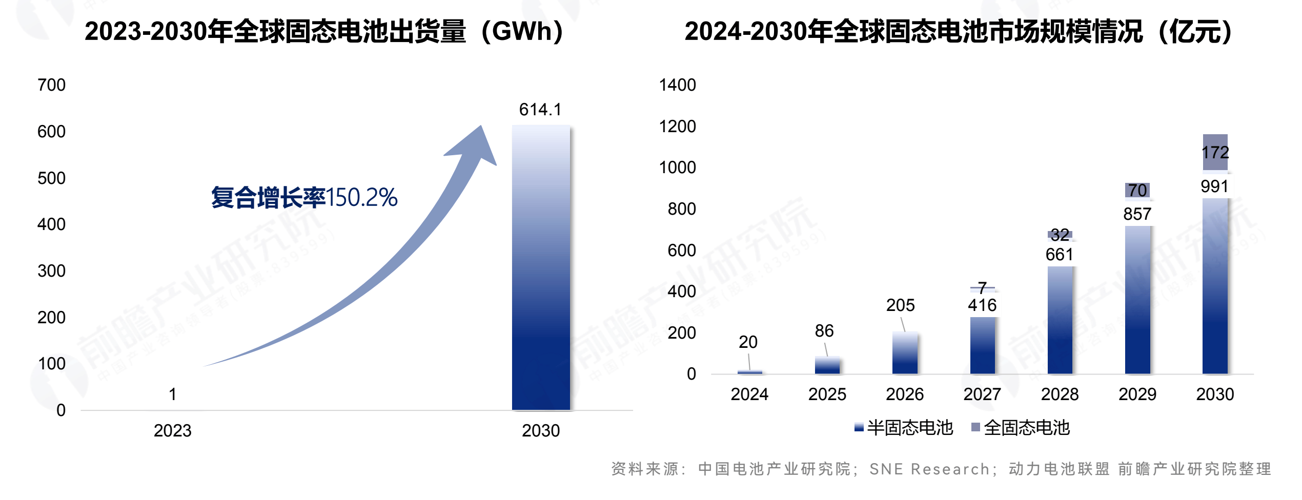 固態電池市場正站在爆發式增長的風口。《2025年固態電池高質量發展藍皮書》顯示,當前固態電池產業化已進入關鍵沖刺期。預計到2030年,全球固態電池出貨量將達614.1GWh,市場規模突破千億元,其中半固態電池將占據約85%的份額。憑借高比能量與高安全性的優勢,固態電池被視為推動新能源產業升級的核心力量。