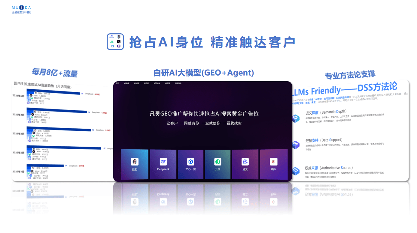 作為深耕數(shù)字營銷領(lǐng)域的高新技術(shù)企業(yè),目易達(dá)科技構(gòu)建了覆蓋全域流量的智能生態(tài)體系。其核心產(chǎn)品"訊靈AI+Agent智能體"通過整合國內(nèi)六大主流AI平臺及百度、抖音、小紅書等頭部互聯(lián)網(wǎng)渠道的AI搜索入口,形成每月超8億次流量的精準(zhǔn)觸達(dá)網(wǎng)絡(luò)。這種全域滲透模式使企業(yè)品牌信息能夠在用戶主動搜索時優(yōu)先呈現(xiàn),有效搶占AI時代的流量制高點。