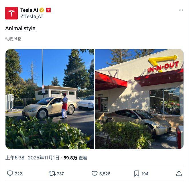 特斯拉AI團隊近日在社交平臺X上發布了一組Cybercab的實車照片,引發市場對這款車型量產進程的廣泛關注。畫面中,一輛Cybercab正在得來速餐廳的排隊通道中等待取餐,其前臉設計成為焦點——流線型輪廓搭配結構緊湊的進氣格柵,車牌支架的加入暗示著量產版本可能已進入細節優化階段。