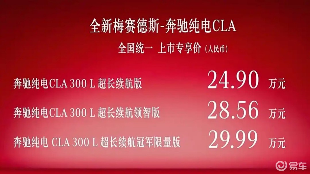 梅賽德斯-奔馳全新純電CLA近日正式登陸中國市場,推出三款配置車型,官方指導價區間為24.9萬至29.99萬元。作為基于MMA純電平臺打造的首款量產車,新車通過866公里超長續航、11安全氣囊標配以及L2+級智能駕駛系統,展現出豪華品牌在電動化領域的深度布局。這款專為中國市場優化的車型,在空間、舒適性及智能化方面進行了多項本土化升級。