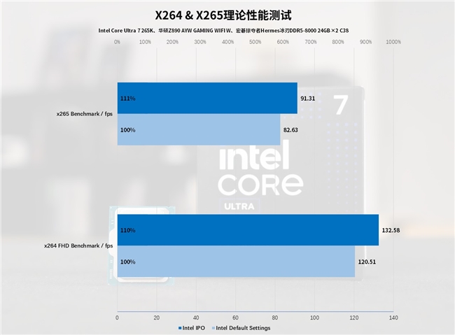 視頻編解碼環節也可以看出IPO對整機性能提升之大,在X264與X265兩項Benchmark里,都是10%以上的性能提升。