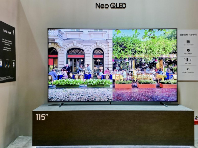 三星電視以全場景產品布局,為用戶解鎖家居生活的多元價值。在觀影場景中,大屏化已成為當代客廳娛樂的核心趨勢,三星作為超大尺寸電視領域的引領者,此次展出的115英寸Neo QLED 4K QN90F星影巨幕成為家庭影院場景的核心代表。NQ8 AI Gen3芯片成為電視的核心驅動力,而專為巨幕體驗研發的超大屏影像增強器,整合了AI驅動的影像增強、降噪、清晰度增強及智能黑色增強技術,確保了巨幕上每一幀畫面的精彩絕倫。4.2.2聲道揚聲器系統、杜比全景聲與音畫追蹤OTS+技術完美協作,Q交響樂技術則可實現電視的揚聲器和三星條形音響同步播放,營造出更具包裹感的聲場。