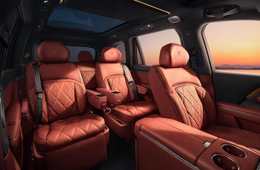 嵐圖泰山在外觀設(shè)計(jì)上同樣不遺余力,車身側(cè)面采用了雙色設(shè)計(jì),搭配半隱藏式車門把手和別致的餅圈輪轂,營造出強(qiáng)烈的視覺精致感和豪華感。車尾部分,貫穿式尾燈組與嵐圖品牌英文標(biāo)識巧妙融合,配合車頂擾流板和倒梯形牌照區(qū)域,層次感十足。車身尺寸方面,新車長寬高分別為5230/2025/1817mm,軸距達(dá)到3120mm,為乘客提供了寬敞舒適的乘坐空間。