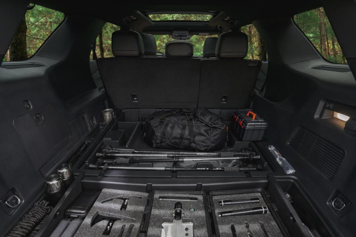 昆侖穿越版以五座布局直擊戶外儲(chǔ)物痛點(diǎn)。常規(guī)狀態(tài)下1505L的后備箱容積,可輕松容納雪板、自行車等大件裝備;第二排放倒后擴(kuò)展至2487L的純平空間,配合15個(gè)精細(xì)化儲(chǔ)物格與可移動(dòng)擋板設(shè)計(jì),實(shí)現(xiàn)物品分類管理的靈活性。新增的置物板下隱藏儲(chǔ)物盒額外拓展近100L空間,讓帳篷、炊具等零散裝備也能有序收納。
