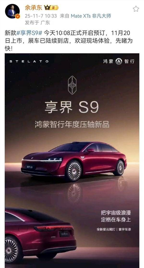 據官方信息,新車將于11月20日正式上市銷售。作為享界品牌旗艦車型,S9將與現款S9T形成產品矩陣,覆蓋30-50萬元豪華轎車市場。此次升級在保持原有價格優勢的基礎上,通過智能化配置與動力系統的全面革新,進一步強化了產品競爭力,有望在高端新能源市場引發新一輪競爭格局變化。