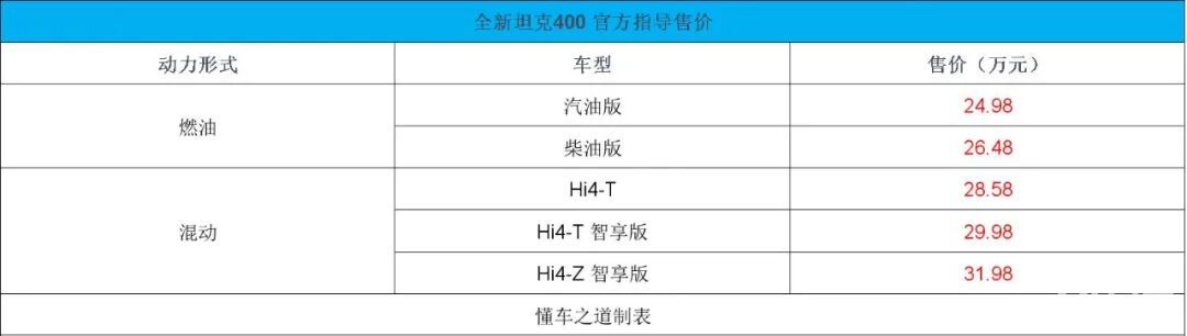 近日,汽車市場(chǎng)迎來一款備受矚目的硬派SUV——全新坦克400正式上市。此次共推出5款配置車型,官方指導(dǎo)價(jià)區(qū)間為24.98萬元至31.98萬元。新車以硬朗的機(jī)甲風(fēng)格設(shè)計(jì)為核心,提供汽油、柴油及插電混動(dòng)三種動(dòng)力選擇,滿足不同消費(fèi)者的需求。