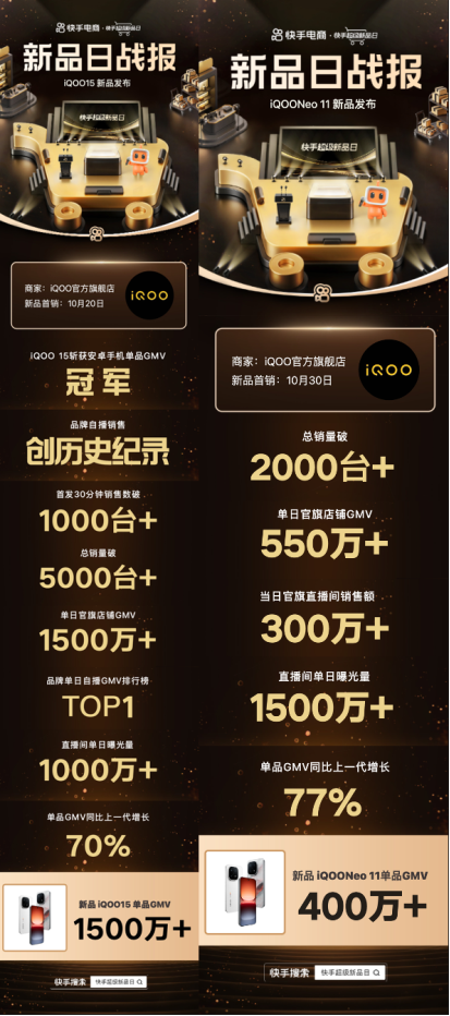 時(shí)值“金九銀十”消費(fèi)旺季以及雙11大促節(jié)點(diǎn),iQOO也計(jì)劃在此期間推出數(shù)字旗艦系列iQOO15,以及Neo 11兩大新品,以?xún)?yōu)質(zhì)新機(jī)承接用戶(hù)旺盛的消費(fèi)熱情,撬動(dòng)品牌實(shí)現(xiàn)銷(xiāo)售新突破。基于這一核心營(yíng)銷(xiāo)目標(biāo),iQOO攜手“快手超級(jí)新品日”,借勢(shì)平臺(tái)IP豐富的合作資源和創(chuàng)新?tīng)I(yíng)銷(xiāo)打法,全面釋放新品首銷(xiāo)勢(shì)能,實(shí)現(xiàn)品牌聲量銷(xiāo)量齊爆發(fā)。