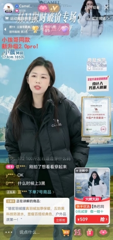 目前,駱駝?wù)杂鸾q服為主打,在快手探索全品類的自播銷售。隨著冬季深入,品牌計劃上架更具保暖性能的軟殼衣褲等單品,并逐步拓展至春夏戶外系列,確保全年貨盤的持續(xù)活力與市場競爭力。