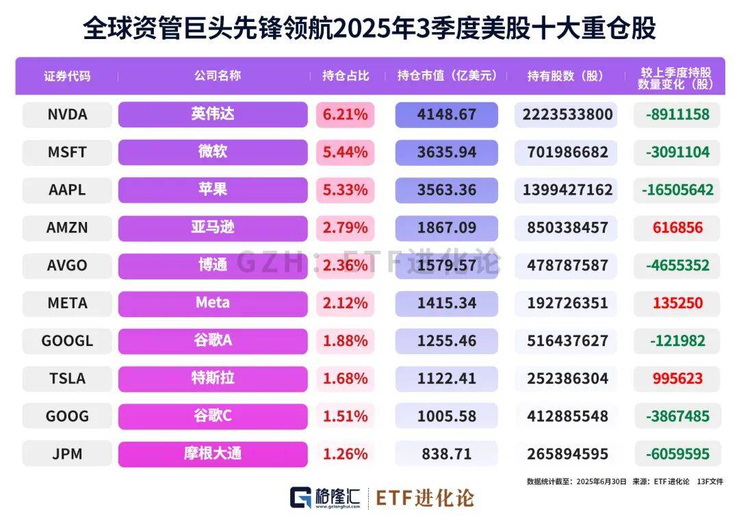 美國證監會最新披露的13F文件顯示,資產管理規模超1億美元的機構投資者已公布截至2025年三季度末的美股持倉情況。包括巴菲特掌舵的伯克希爾、段永平管理的H&H投資、全球資管巨頭貝萊德、摩根大通、景順集團等知名機構,以及索羅斯量子基金、文藝復興科技、橡樹資本等對沖基金的持倉動向悉數浮出水面。
