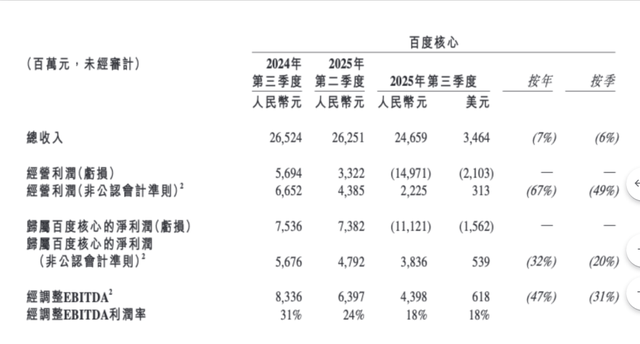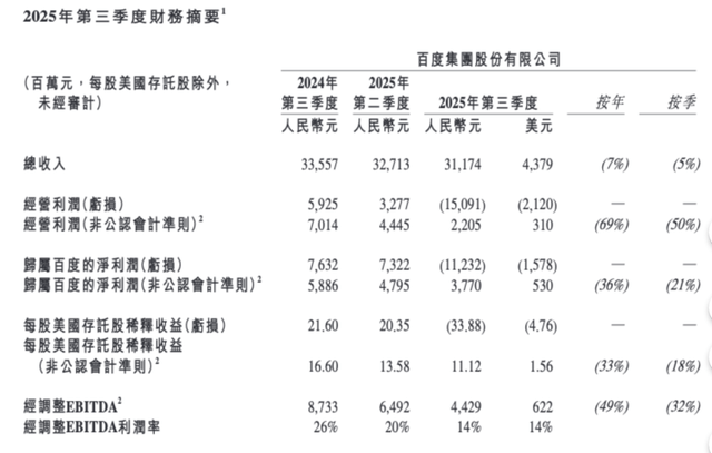 百度2025年Q3財報:總營收下滑7%,AI業務成新引擎收入同比增超五成