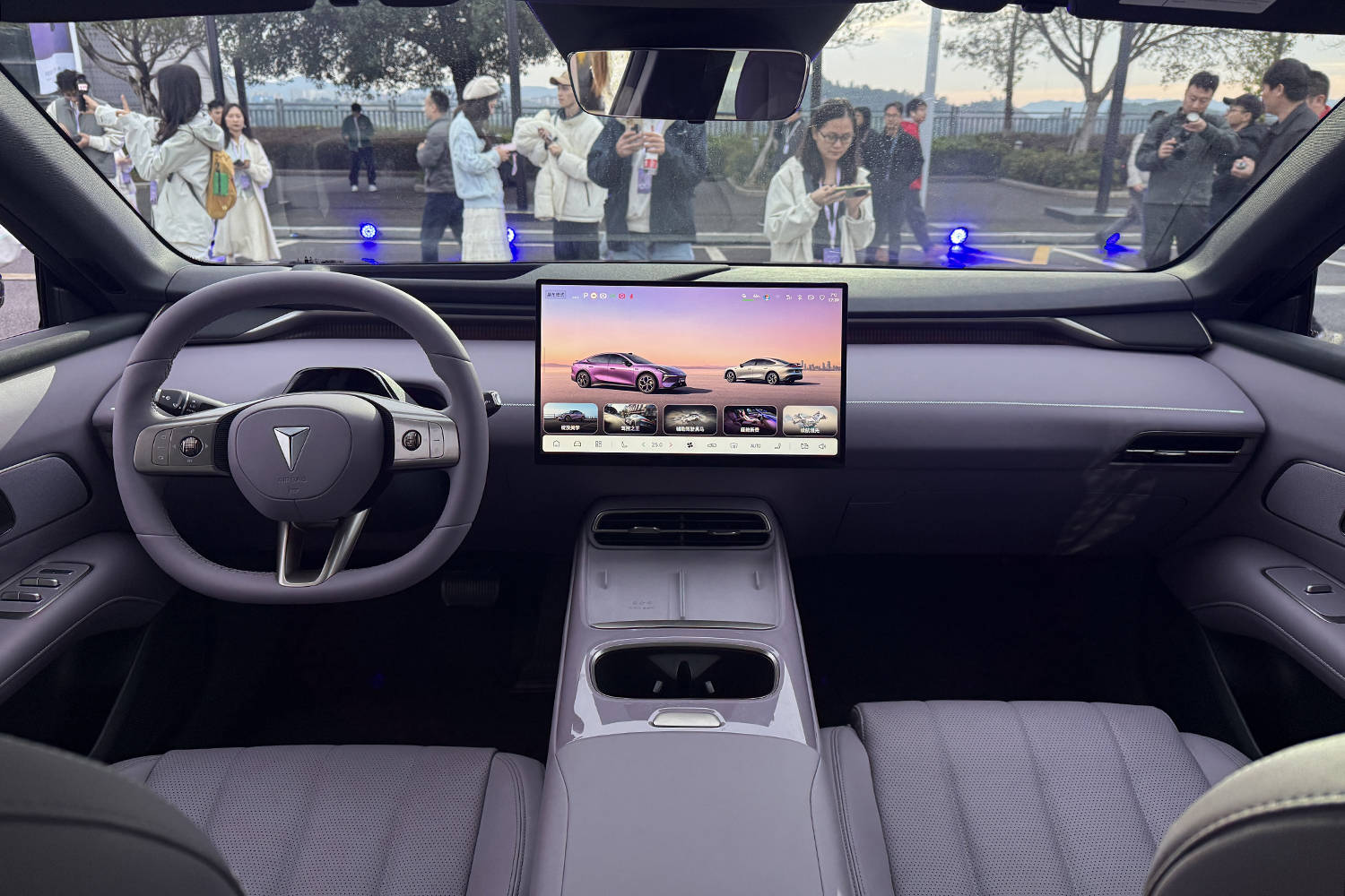 進入車內,深藍L06采用經典的T字形布局,三幅式方向盤經過特別設計,配備滾輪和摁鈕兩種調節方式,操作便捷。中控臺配備大尺寸顯示屏,下方為空調出風口,整體設計簡潔大方。新車還搭載了50英寸AR-HUD抬頭顯示系統,提升駕駛便利性。