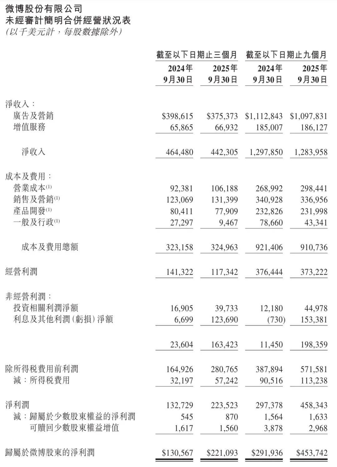 微博2025年Q3財報:營收4.42億美元 凈利同比增68% 用戶規(guī)模持續(xù)擴大