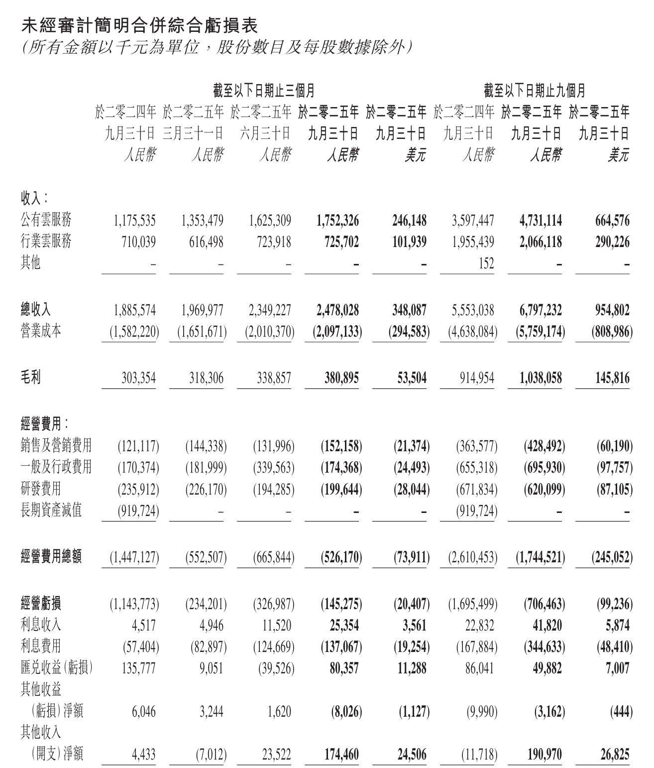 凈虧損方面,金山云2025年第三季度凈虧損為785萬元,較上年同期的10.61億元和上一季度的4.57億元均有大幅改善。這主要得益于經營虧損的收窄以及其他收入中的非經常性補貼增加。