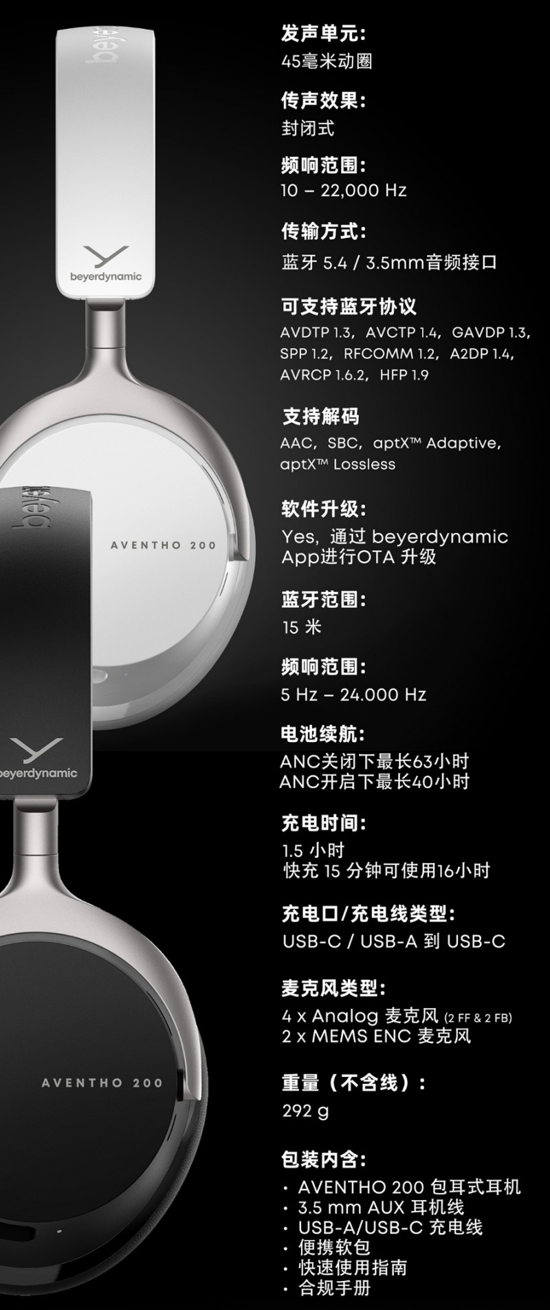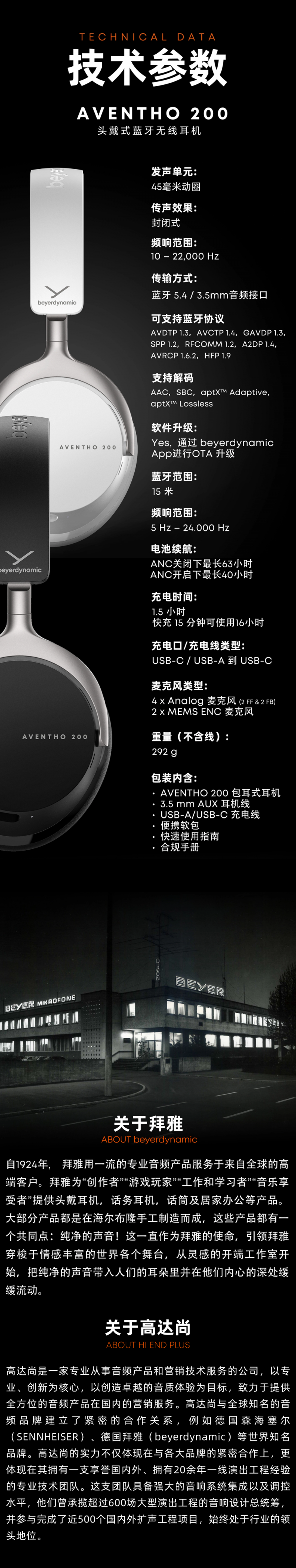 德國拜雅首款可換電池降噪藍牙頭戴耳機:AVENTHO 200正式發售