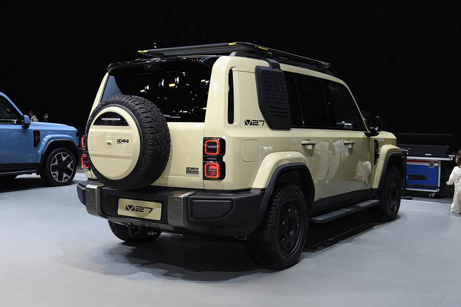 從外觀設(shè)計來看,iCAR V27展現(xiàn)出硬朗大氣的風(fēng)格。車身側(cè)面線條平直硬朗,整體造型方正魁梧,給人一種穩(wěn)重且充滿力量感的視覺效果。值得一提的是,它延續(xù)了iCAR V23上的諸多家族化設(shè)計元素,例如車尾盲窗,以及車頭側(cè)面集成NFC模塊和攝像頭的“機(jī)能模塊”等,這些設(shè)計不僅增強了車輛的辨識度,也進(jìn)一步強化了品牌的家族特征。在尺寸方面,iCAR V27提供了兩種版本,長寬高分別為4909(小書包版)/5055(備胎版)x1976x1855/1894(帶行李架)mm,軸距達(dá)到了2910mm,這樣的尺寸數(shù)據(jù)使其在中大型SUV市場中具備了一定的競爭力。