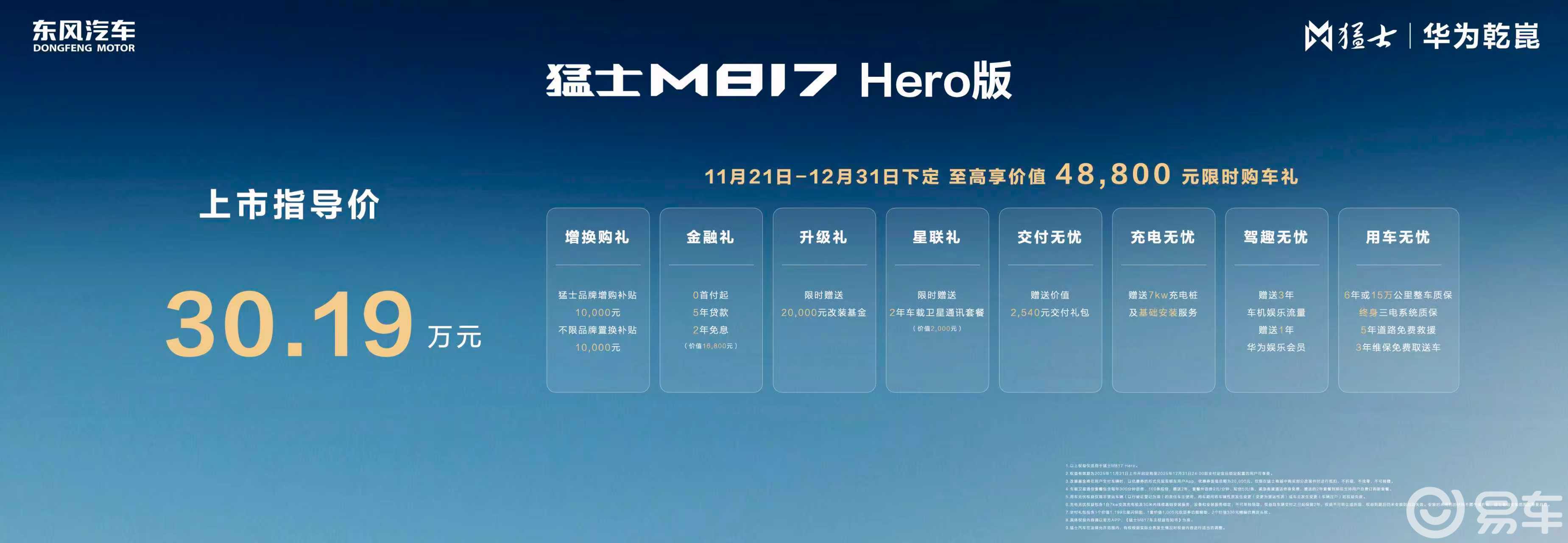 猛士汽車與華為乾崑聯合推出的豪華智能越野SUV——猛士M817 Hero版正式登陸市場,官方指導價30.19萬元。這款新車以“智能越野第一車”為定位,在延續猛士家族硬派越野基因的同時,通過智能化升級、全地形適應性優化及深度改裝潛力開發,為越野愛好者帶來全新選擇。